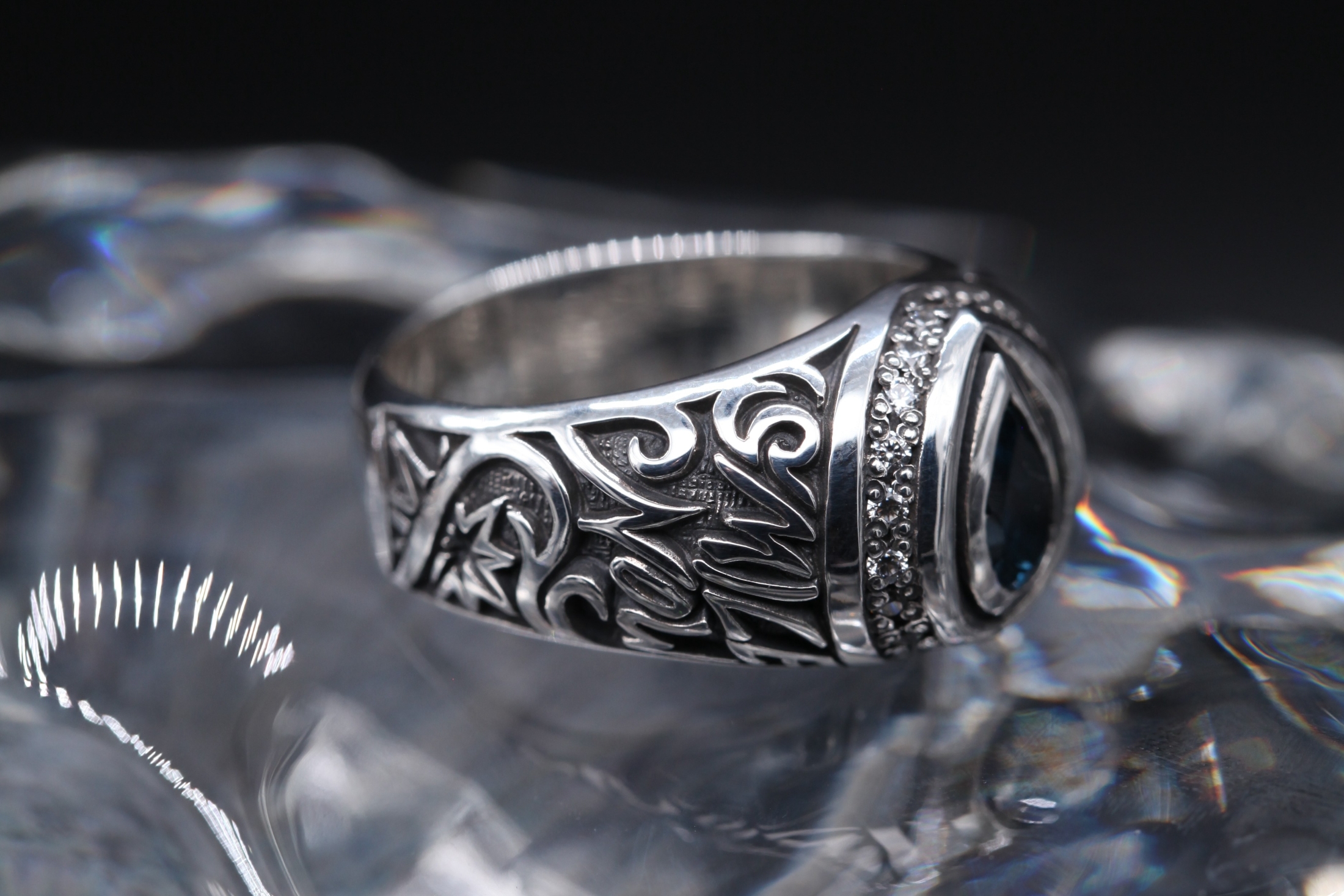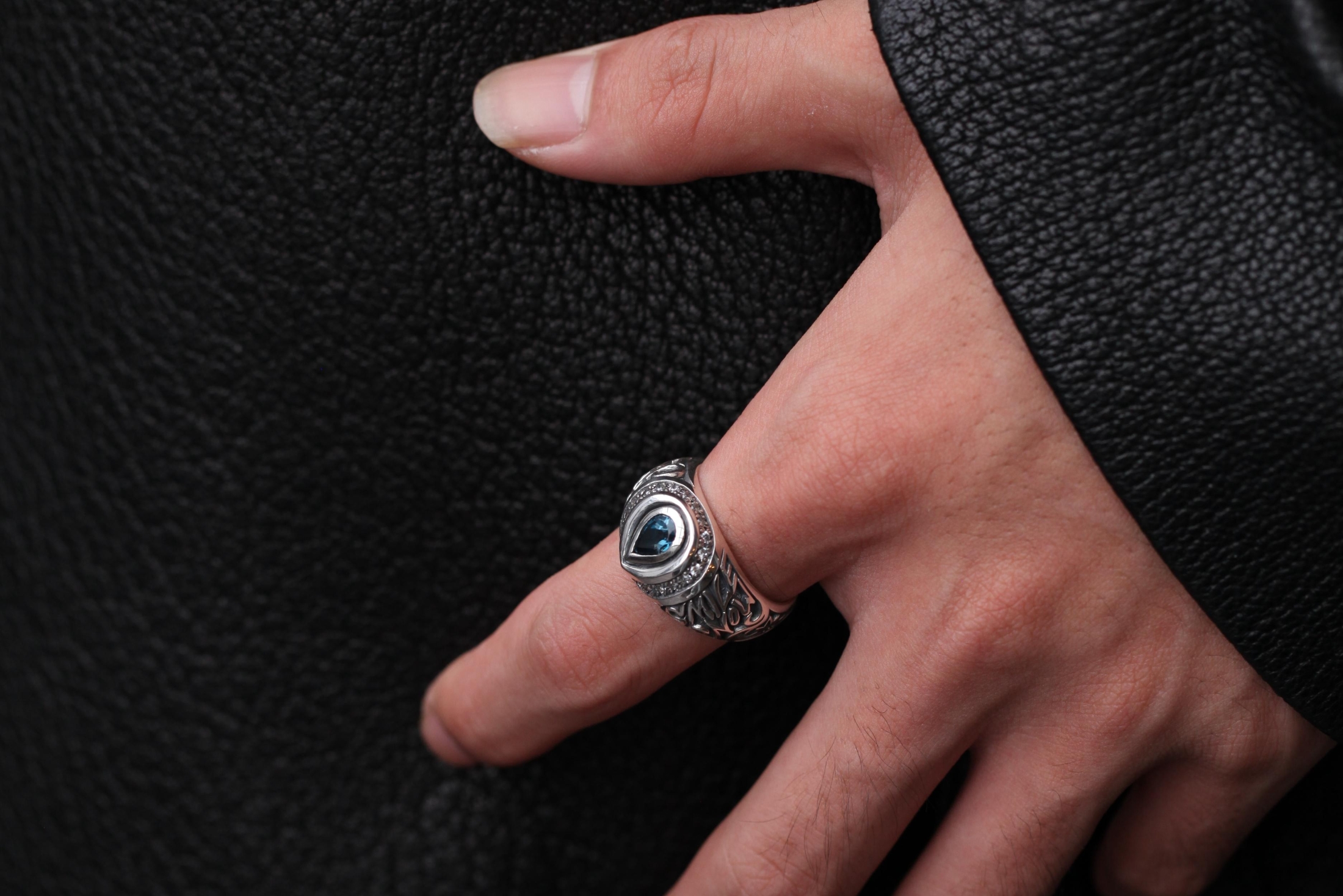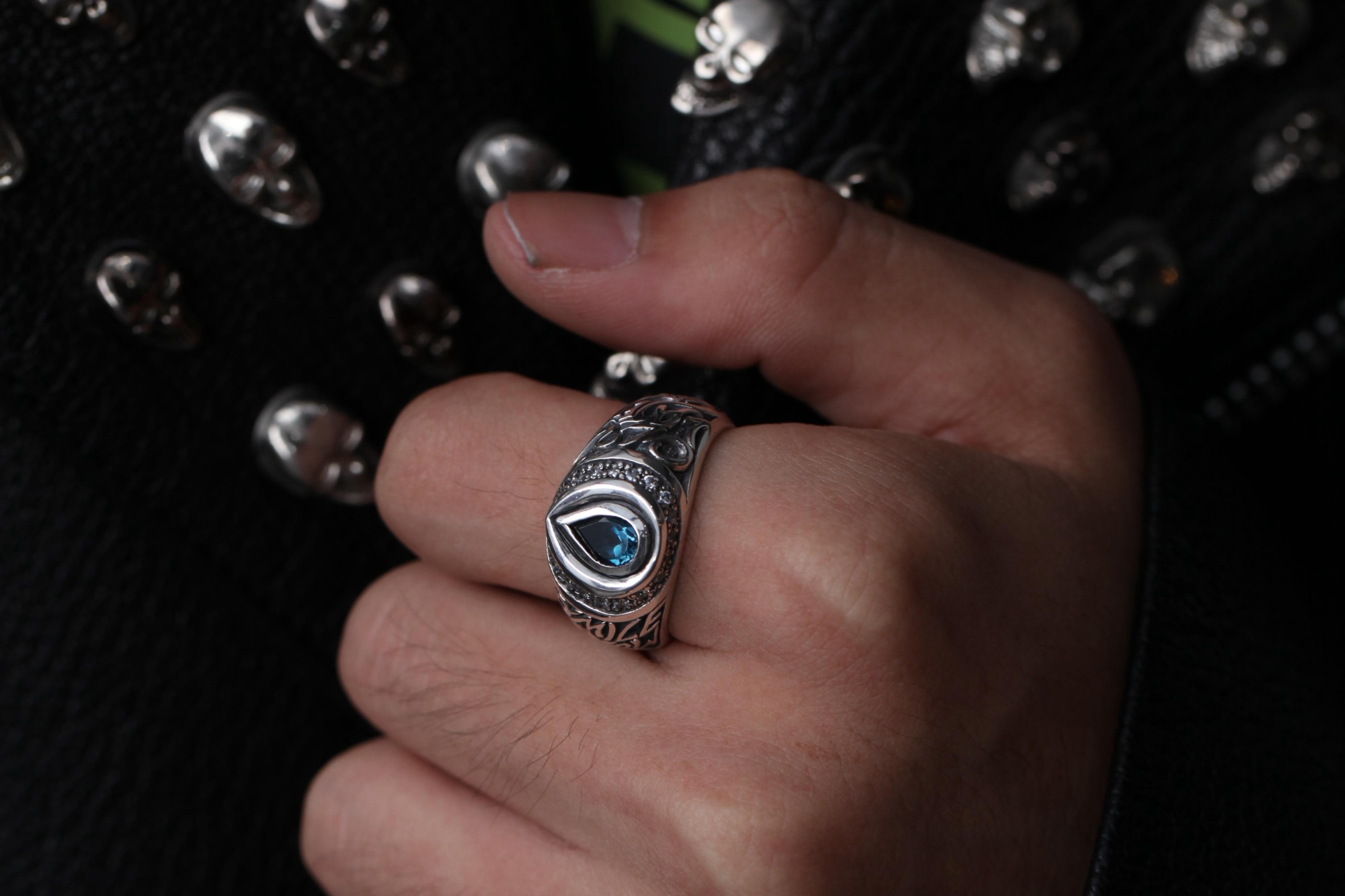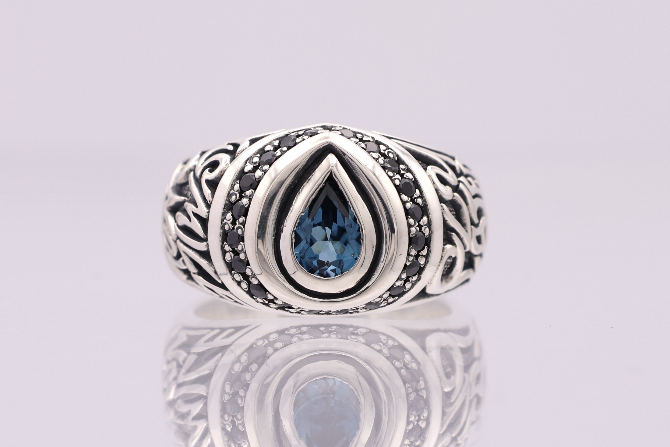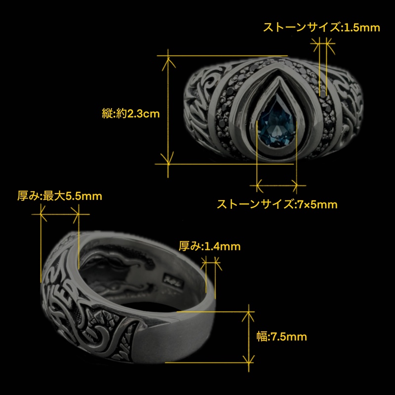 ◆ コンクエスト”PS”リング 【ロンドンブルートパーズ】CZブラック