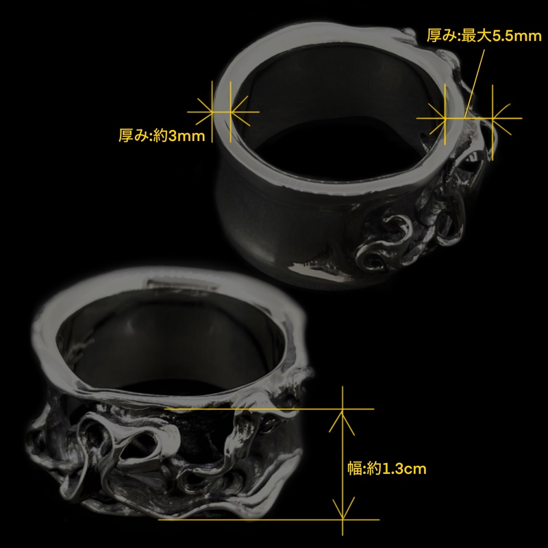 を描いている。リングの腕は熱で溶けたようなデザインで、黒っぽい印象に仕