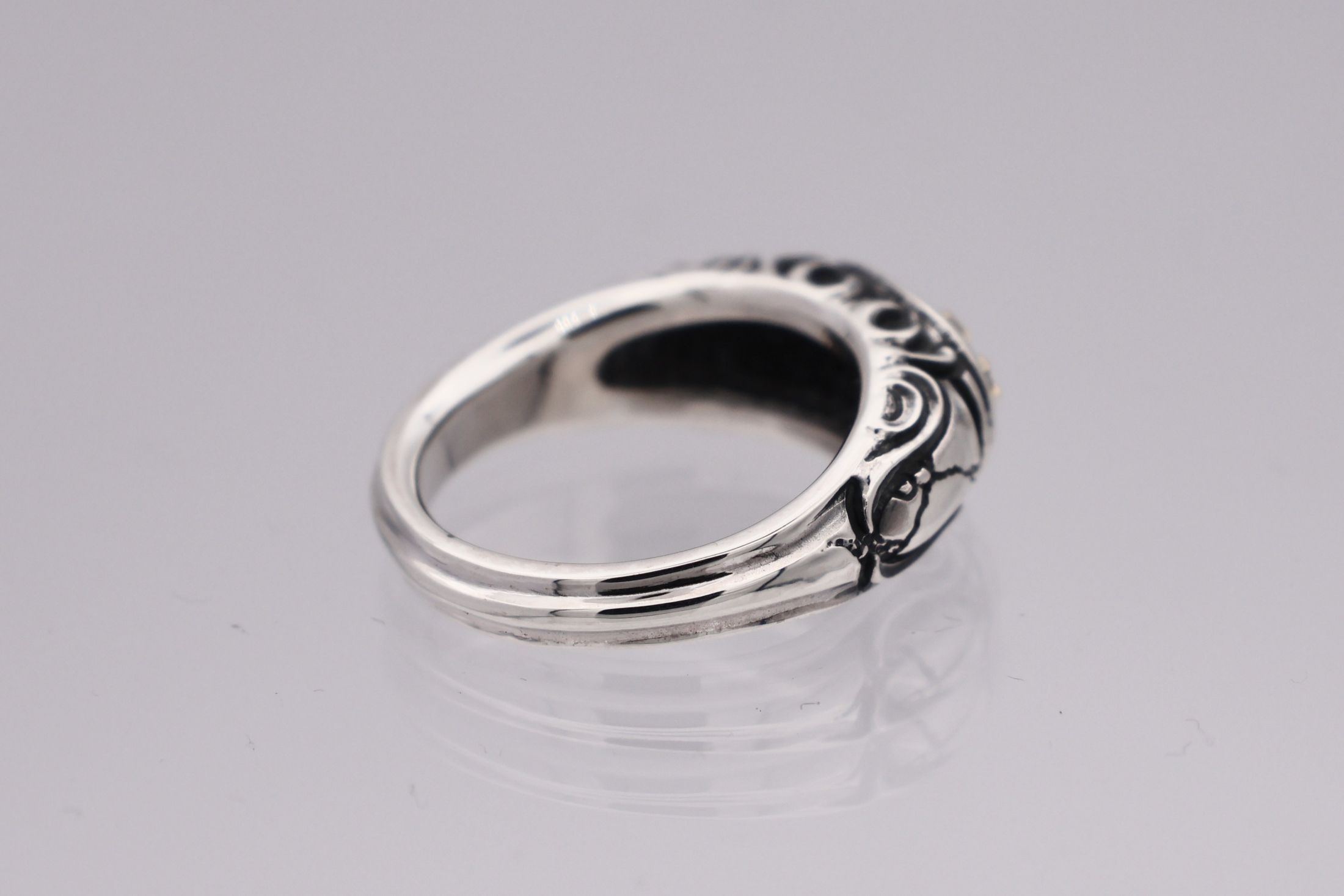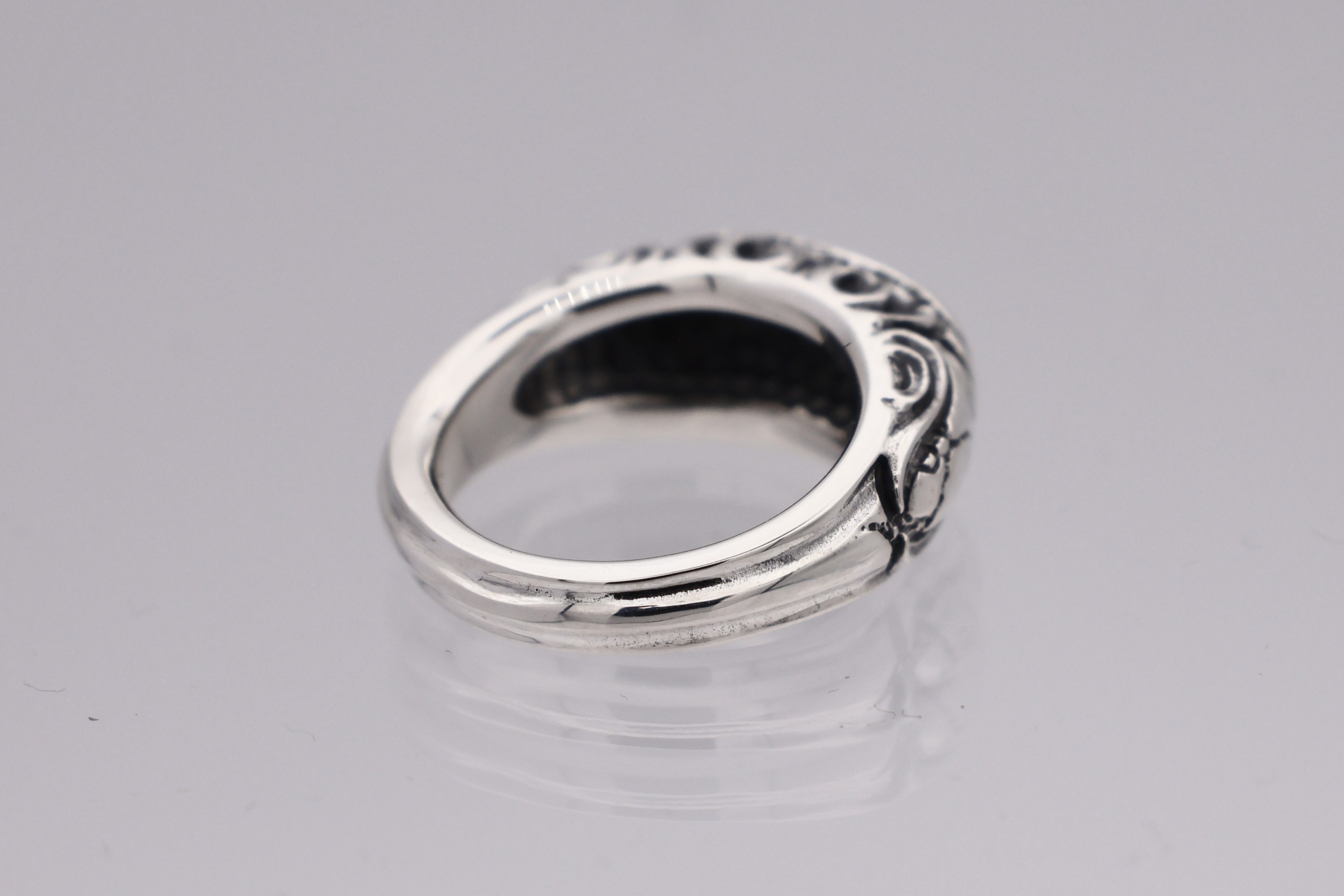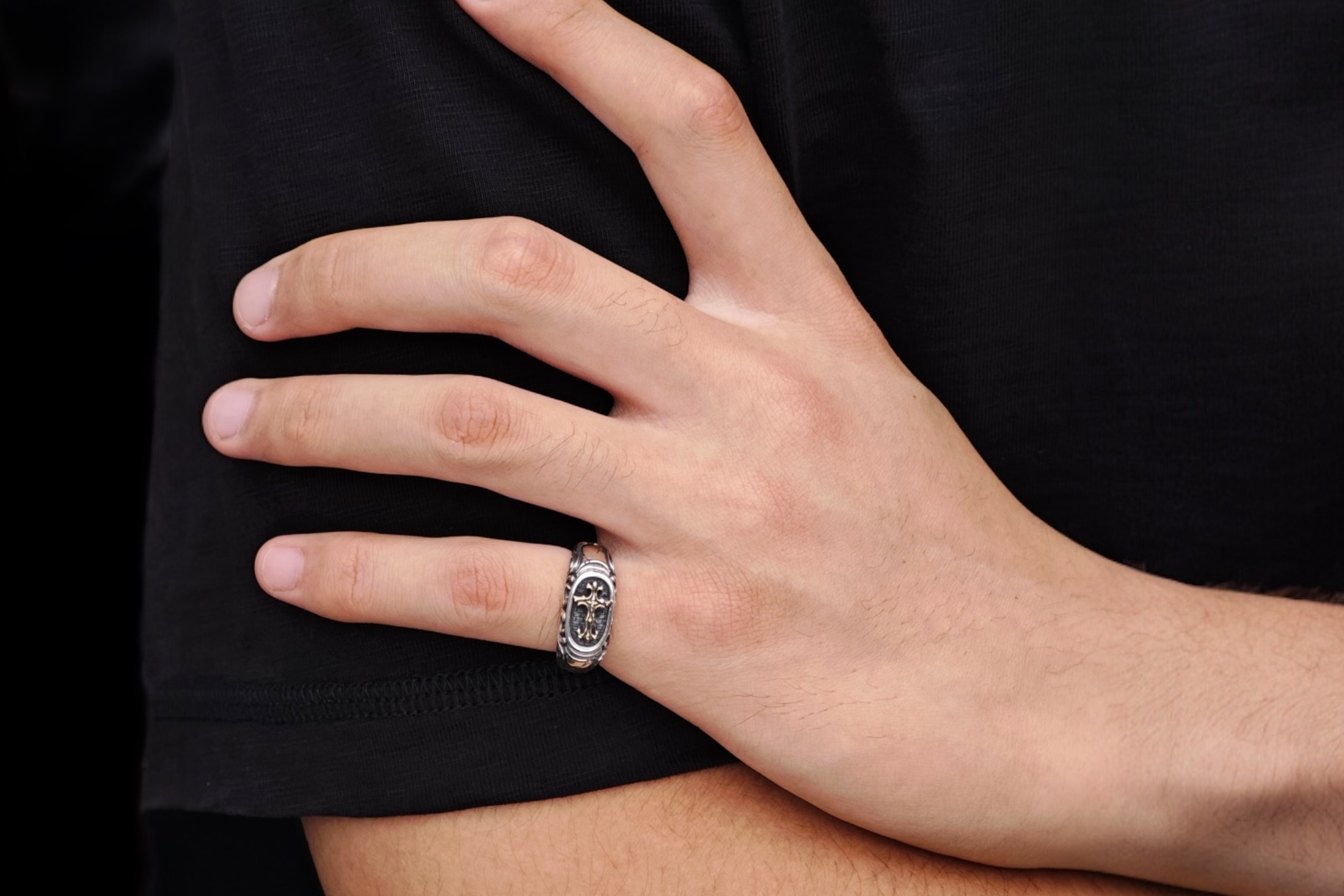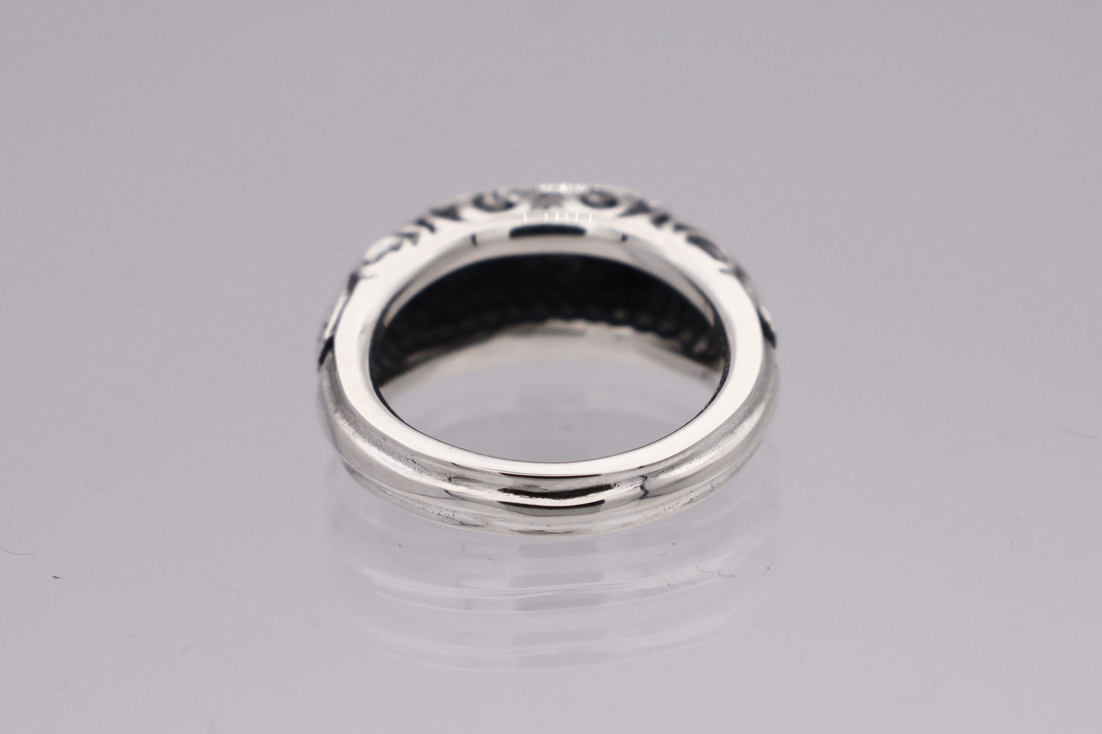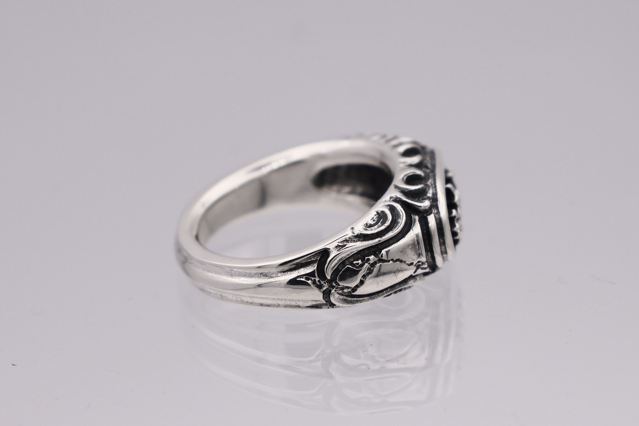 リングの中央にブラッドレスクロスモチーフを配置した印台型リング。「トゥーム