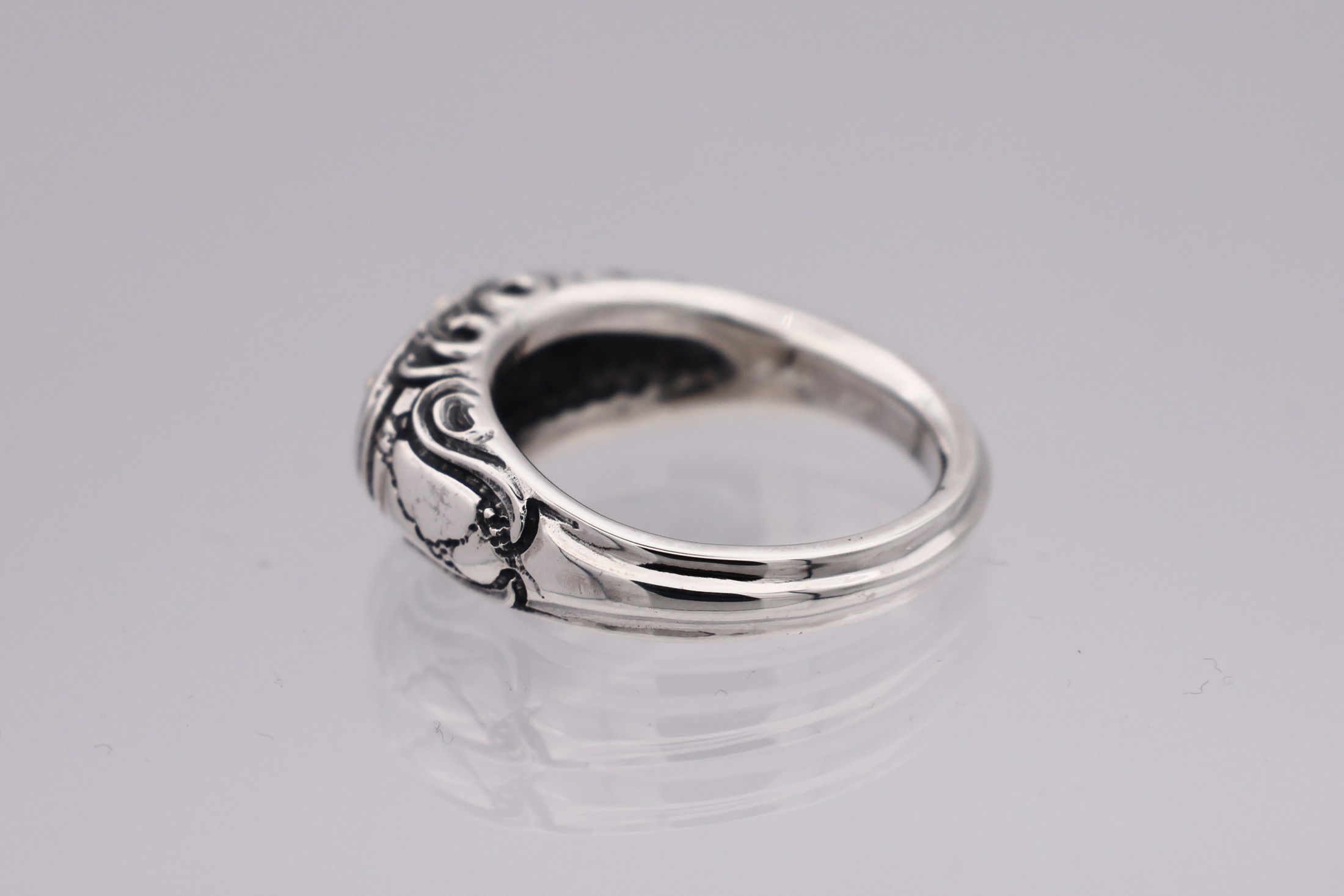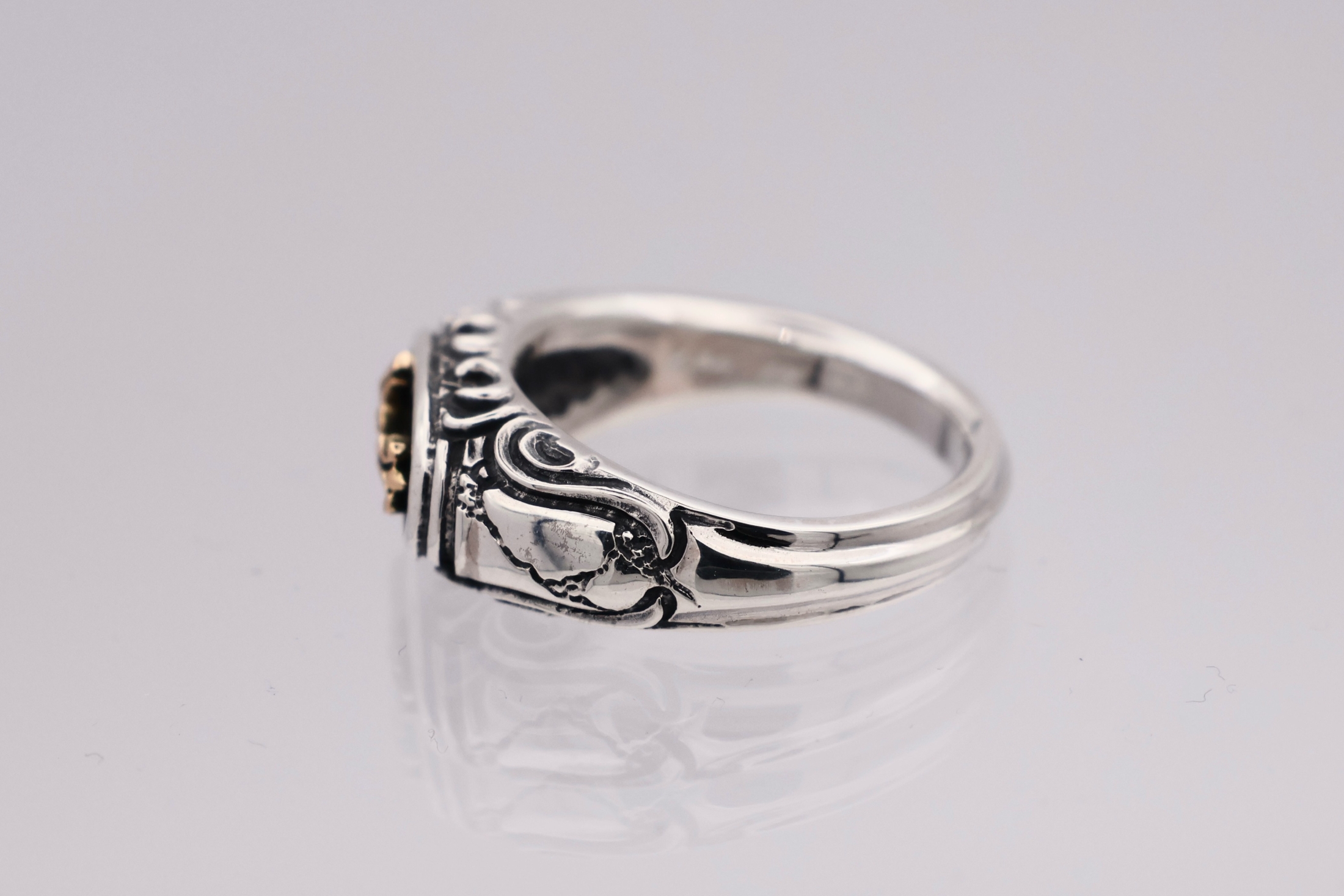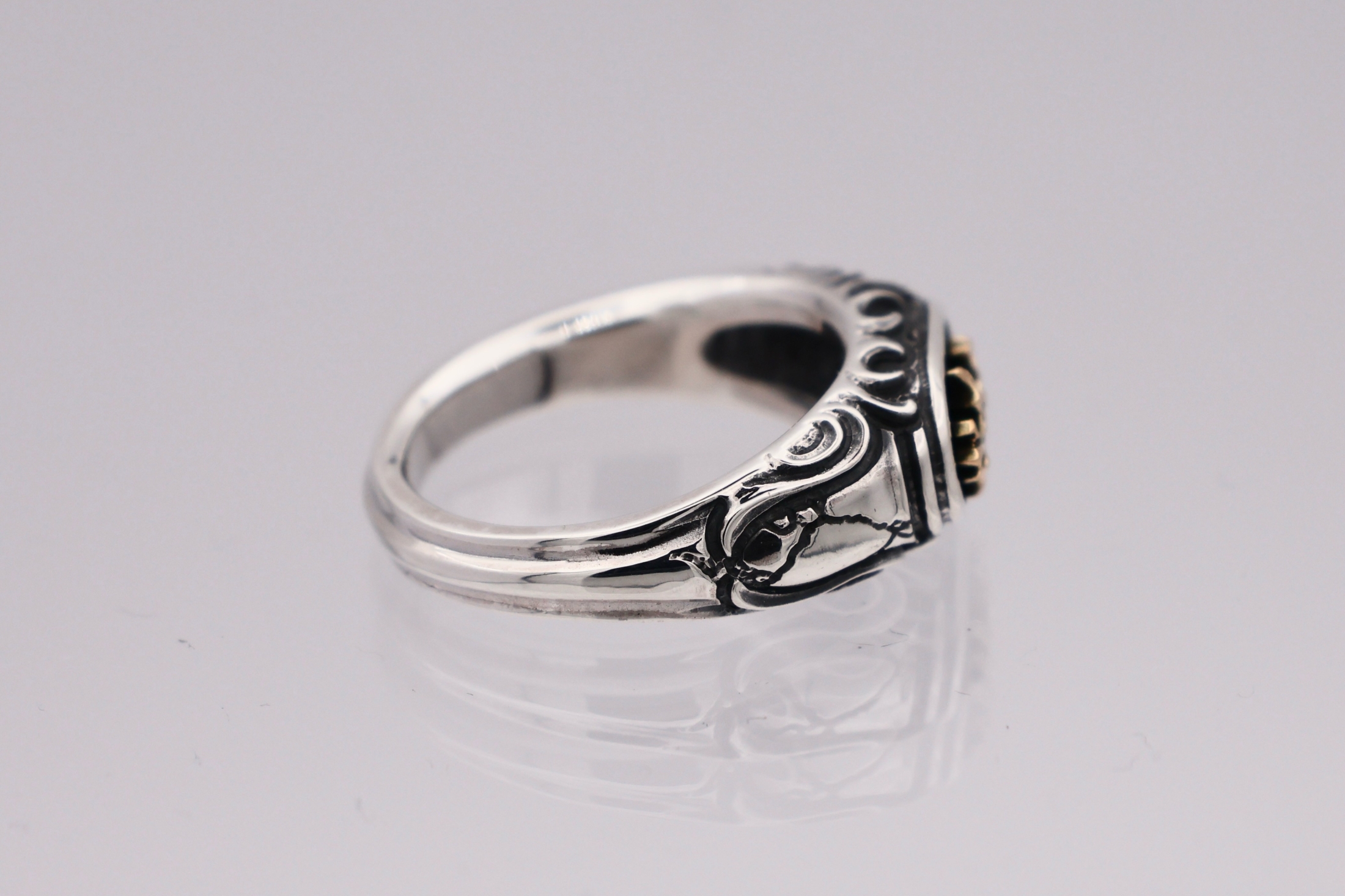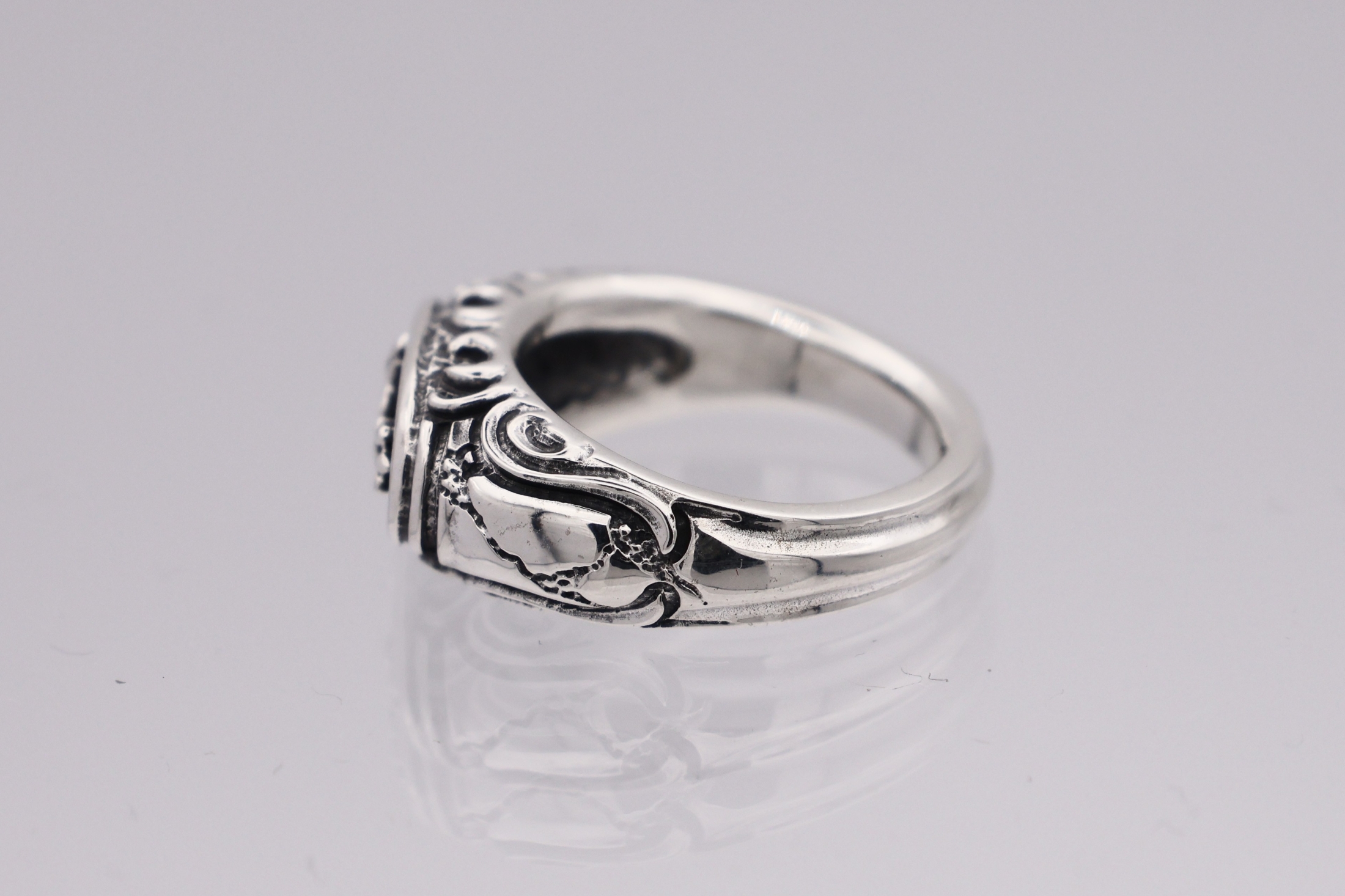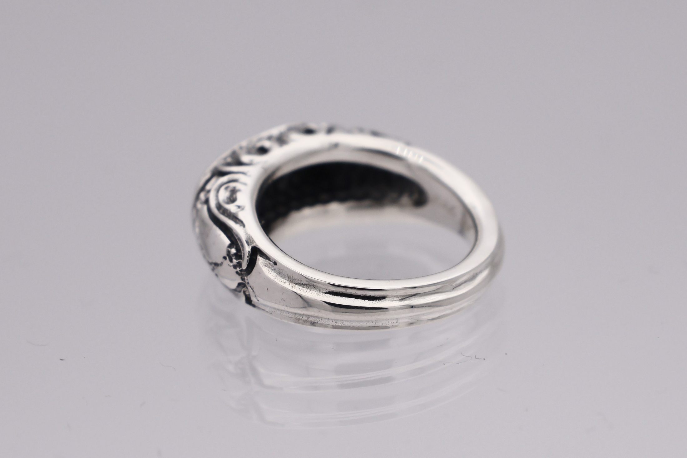 リングの中央にブラッドレスクロスモチーフを配置した印台型リング。「トゥーム
