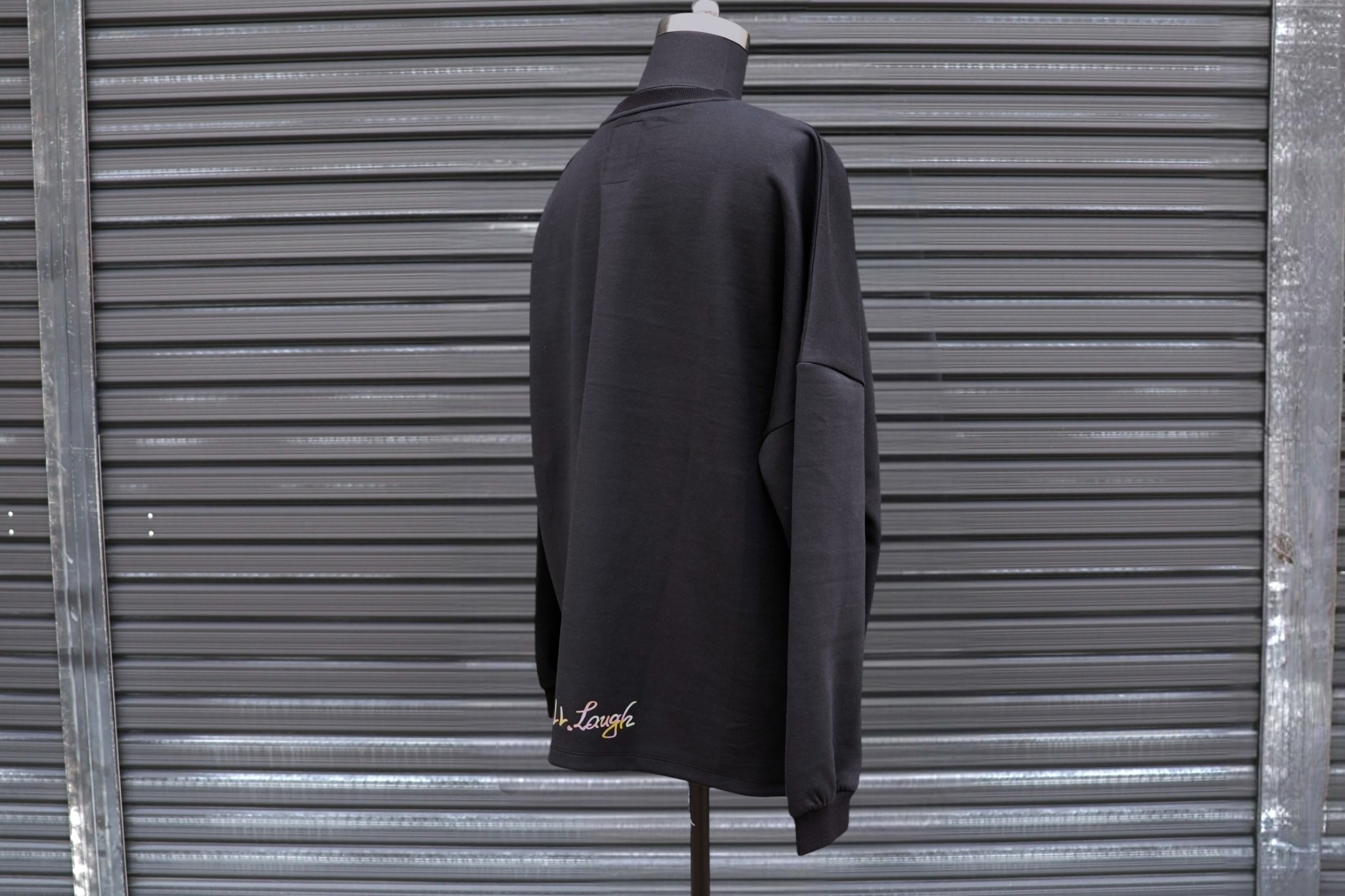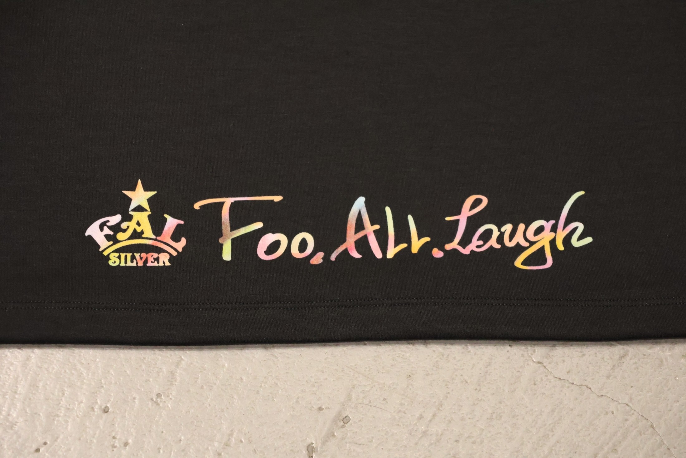 Laugh』をプリント。フロントのプリントは白一色に対し、バックプリントのブラ