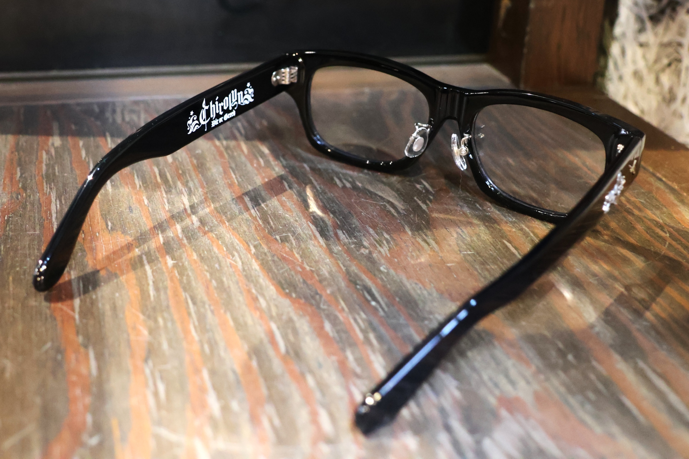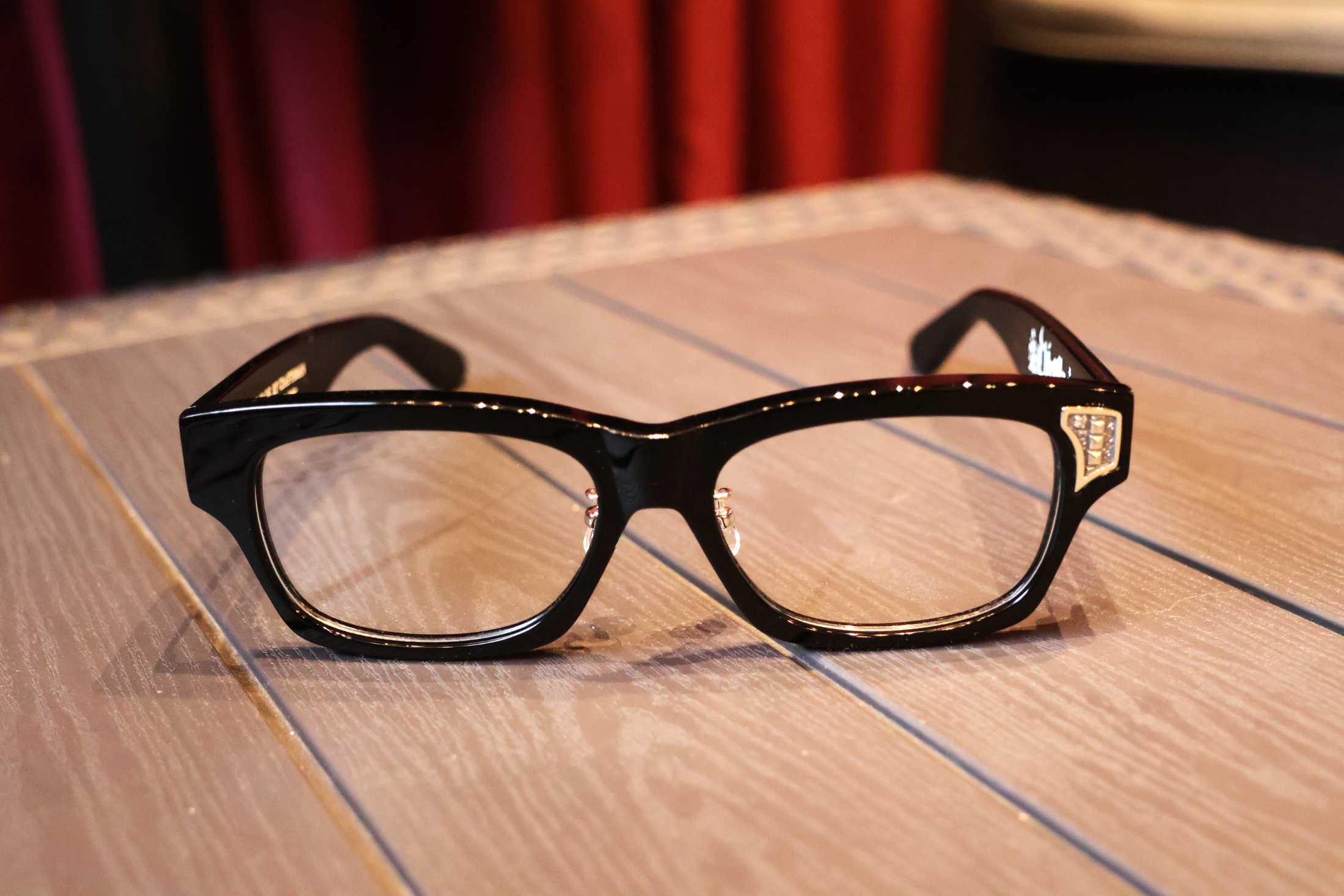 た「"Die or Greed"Glasses」に、F.A.Lがメガネ用の装飾パーツをカスタマイ