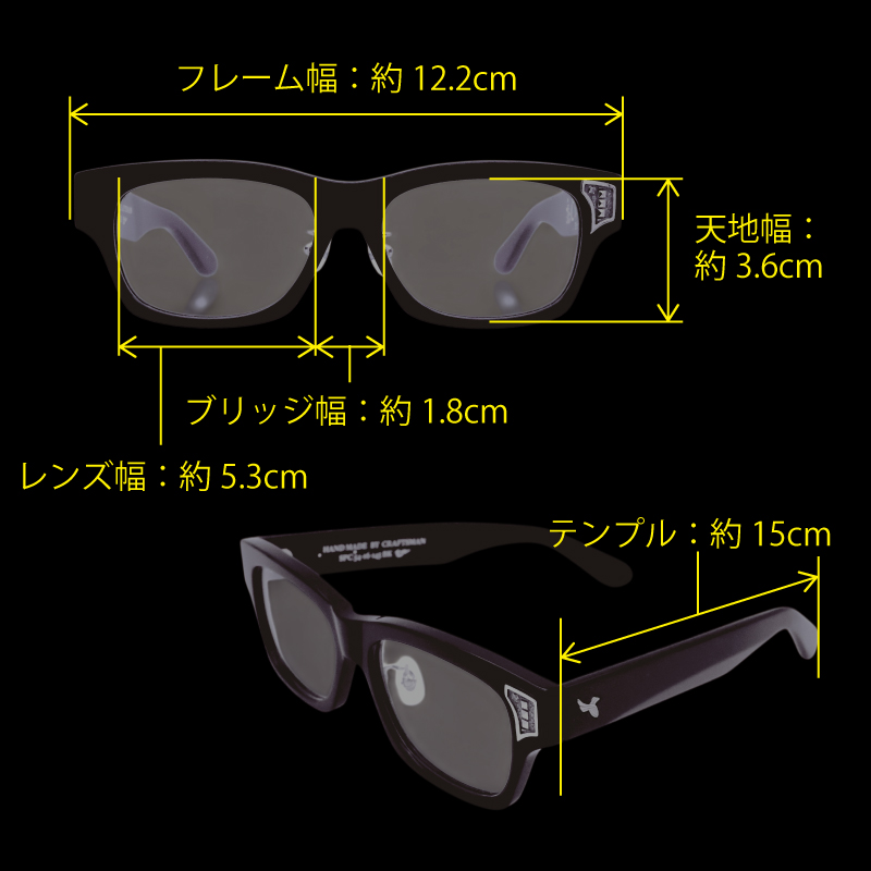 フロント厚み:5o / レンズシェイプ:ウェリントン / 丁番7枚の重厚感あ